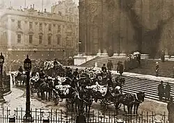 Ese mismo día se celebró una misa conmemorativa en la catedral de San Pablo para honrar a Tucker, Bentley y Choate. Acudieron a ella Edward Wallington, en representación del rey Jorge V, Winston Churchill y el alcalde de la ciudad.[70][71] Conmocionados por los crímenes, los londinenses mostraron sus sentimientos en el servicio. Alrededor de diez mil personas aguardaron en las inmediaciones de San Pablo, muchos dueños de negocios los cerraron en señal de respeto y la Bolsa se detuvo durante media hora para que los inversores pudieran asistir a la procesión que recorrió Threadneedle Street. Concluida la misa, 750 000 personas arroparon a los fallecidos en los trece kilómetros que recorrieron sus féretros de camino al cementerio; muchos de ellos incluso les lanzaron flores a su paso.[72][73]