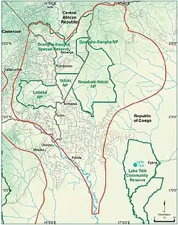 El Sitio trinacional de Sangha es una zona de bosque formada por varios parques nacionales y situada entre los estados de Camerún, la República Centroafricana y la República del Congo que fue declarada Patrimonio de la Humanidad por la Unesco en 2012.[1]