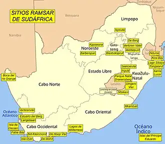 - ↑ «Sudáfrica». Ramsar. Consultado el 15 de febrero de 2025.