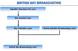 Inicialmente formada en 1990 por la fusión igual de Sky Television y British Satellite Broadcasting, BSkyB se convirtió en la compañía de televisión de suscripción digital más grande del Reino Unido. En 2014, después de completar la adquisición de Sky Italia y Sky Deutschland, la compañía fusionada cambió su nombre a Sky plc.[1]