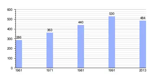 | Gráfica de evolución demográfica de Smailbegovići entre 1961 y 2013 |