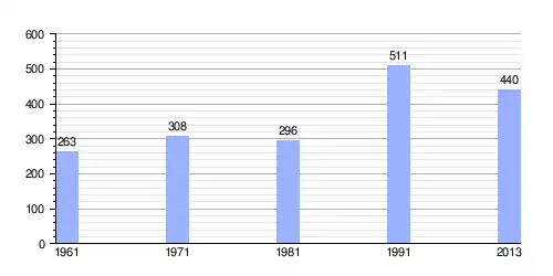 Hasta 2013 la población era de 440 habitantes, con una densidad de población de 157,6 hab/km².[4]