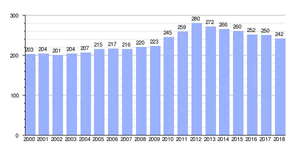 | Gráfica de evolución demográfica de Sobre a Igrexa entre 2000 y 2018 |