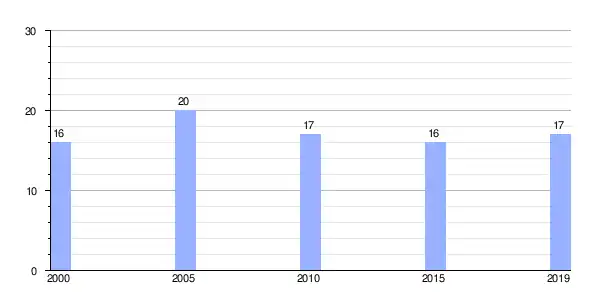 | Gráfica de evolución demográfica de Sobredo entre 2000 y 2019 |