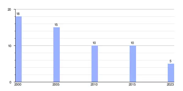 | Gráfica de evolución demográfica de Sobredo entre 2000 y 2023 |