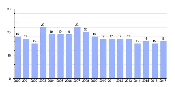 | Gráfica de evolución demográfica de Sobrepeña[2] entre 2000 y 2017 |