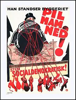 - ↑ «Socialdemokraterne – Socialdemokratiet» [Socialdemócratas – Socialdemocracia]. kb.dk (en danés). Det Kongelige Bibliotek. Consultado el 18 de noviembre de 2013.