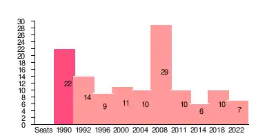 | Elección | Votos | % | Escaños | +/– | Posición | Gobierno |