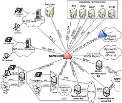 Observación: en muchas ocasiones, incluyendo este artículo, se hace referencia al softswitch como un elemento de red (que en realidad es el Media Gateway Controller). El término softswitch en si, según el concepto de la 3GPP, responde a toda la integración de los elementos de una red NGN.