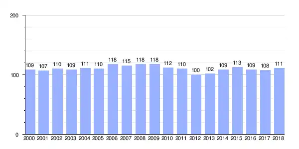 | Gráfica de evolución demográfica de Soigrexa entre 2000 y 2018 |