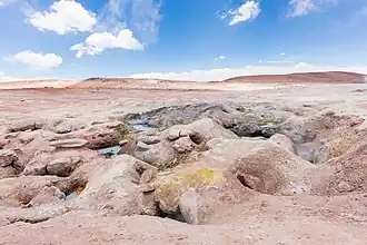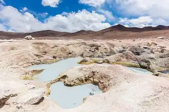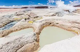 - ↑ Pereyra Quiroga, Bruno; Meneses Rioseco, Ernesto; Kapinos, Gerhard; Brasse, Heinrich (Septiembre de 2023). «Three-dimensional magnetotelluric inversion for the characterization of the Sol de Mañana high-enthalpy geothermal field, Bolivia» (PDF). Geothermics (en inglés) 113: 18. doi:10.1016/j.geothermics.2023.102748. Consultado el 23 de abril de 2024.