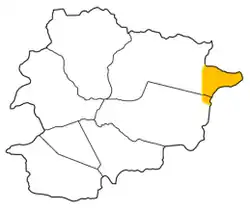 Aunque mayoritariamente pertenece a la parroquia de Canillo, el núcleo urbano de Pas de la Casa, de la parroquia de Encamp, se encuentra en el extremo de la solana cerca del puerto de Envalira. Ambas parroquias comparten los beneficios de la explotación del territorio, utilizado para pastos y para la estación de esquí del Pas de la Casa.