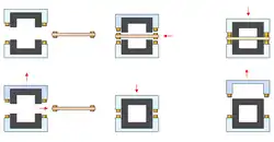 El procedimiento se lleva a cabo mediante un elemento susceptible a las variaciones de un campo magnético, situado en la entrecara de los sustratos. Dependiendo de la naturaleza de dicho elemento el fenómeno físico por el cual se calienta es distinto, a saber: histéresis magnética, efecto Joule o corrientes inducidas.