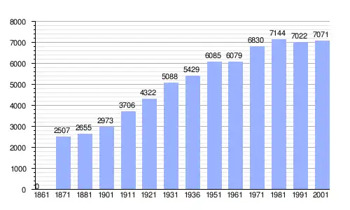 | Gráfica de evolución demográfica de Solesino entre 1861 y 2001 |