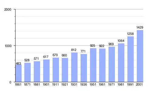 | Gráfica de evolución demográfica de Solza entre 1861 y 2001 |