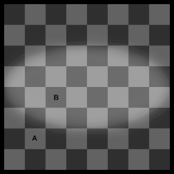 Si solo existe una fuente de luz, las sombras arrojadas por ella serán siempre grises, sea cual sea el color de la fuente. En cambio, si existen dos fuentes de luz de distintos colores, supongamos rojo y azul, las sombras proyectadas por cada una de ellas serán del color de la otra fuente y solo la intersección de ambas sombras será gris. Es decir, la sombra de la luz roja será azul, pues está iluminada por la fuente azul y viceversa. En el caso de que existan más fuentes de luz, cada sombra será del color resultante de la adición de las fuentes que aún iluminan esa zona, permaneciendo en gris las zonas donde se intersecan las sombras de todas las fuentes luminosas.