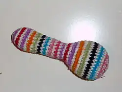 El sonajero es un juguete para estimular los sentidos de los bebés: los colores estimulan el sentido de la vista, los sonidos el del oído, sus formas el sentido del tacto y olor el sentido del olfato.