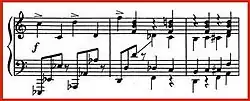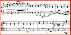 Esta sección final concluye con una exposición final del estribillo, y la batalla final entre los diferentes temas: el estribillo, el leitmotiv de tres notas descendentes, las notas repetidas, cada vez más frenéticas, que explotan en un acorde final haciendo resonar todas las cuerdas del piano.