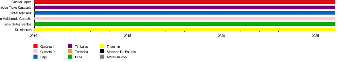 - Lucio de los Santos: flauta, bongó, shekere y cencerro (2010-presente)