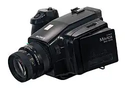 - ↑ "The Mavica was a single lens reflex with interchangeable lenses. The original Mavica was provided with three bayonet-mounted lenses: a 25mm f/2, a 50mm f/1.4, and 16-65mm f/1.4 zoom." Mavica introduction in 1981 Archivado el 24 de diciembre de 2016 en Wayback Machine.