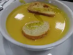 La sopa de calabaza es una especie de puré elaborado con calabaza. Este tipo de sopa se elabora de diferentes formas a lo largo de las diversas cocinas del mundo,[1] sirviéndose tanto fría como caliente.