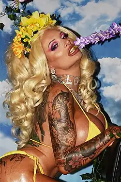 - ↑ «Porn Star's Bizarre Death Scare Horror As Boob Explodes In Shower – Leaving 'Career In Jeopardy'». That Viral Feed. Consultado el 24 de enero de 2024.