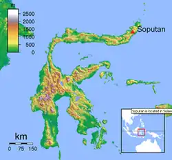 El Soputan es un estratovolcán situado en el brazo norte de la isla de Célebes en Indonesia, en la provincia de Célebes Septentrional. Se asienta en el borde meridional de la caldera del Tondano. Es del Cuaternario, siendo uno de los volcanes más activos de la isla.[1]
