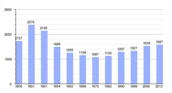 | Gráfica de evolución demográfica de Sorges-et-Ligueux-en-Périgord entre 1800 y 2013 |