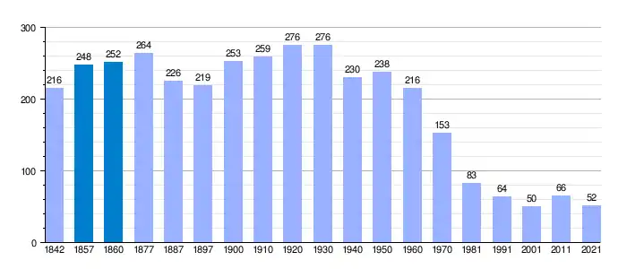 | Gráfica de evolución demográfica de Sorlada[14] entre 1842 y 2021 |