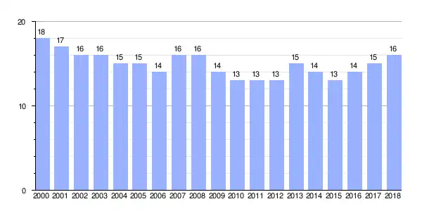 | Gráfica de evolución demográfica de Sorribas entre 2000 y 2018 |