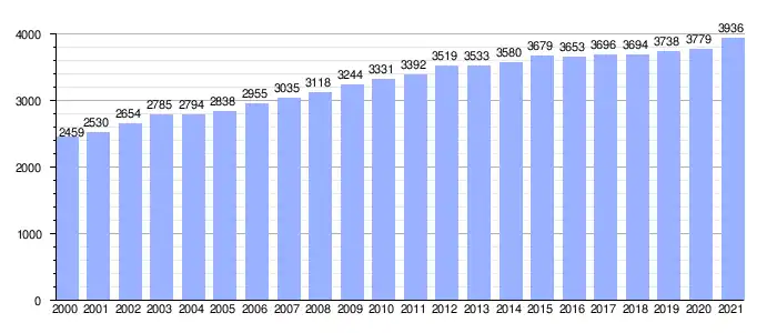 | Gráfica de evolución demográfica de Soto de la Marina entre 2000 y 2021 |