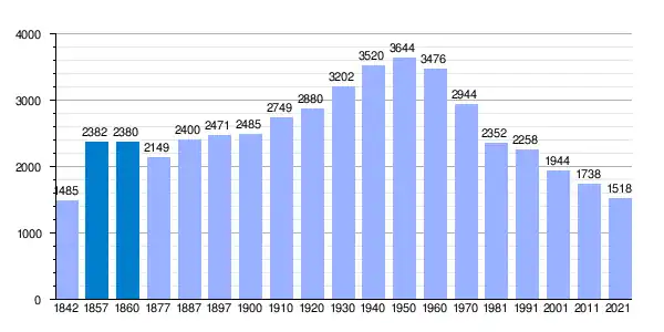 | Gráfica de evolución demográfica de Soto de la Vega[6] entre 1842 y 2021 |