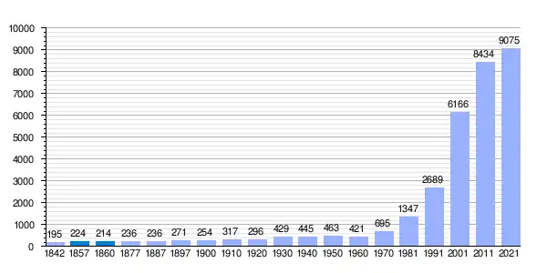 | Gráfica de evolución demográfica de Soto del Real[10] entre 1842 y 2021 |