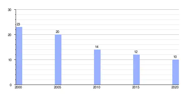 | Gráfica de evolución demográfica de Soutordei (aldea) entre 2000 y 2020 |