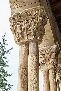 Destaca su galería porticada, típica de esta zona, por la decoración y el número de sus capiteles.