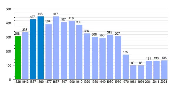 Población según el Diccionario geográfico-estadístico de España y Portugal de Sebastián Miñano.[4] Población de derecho según los censos de población del INE. Población de hecho según los censos de población del INE. |