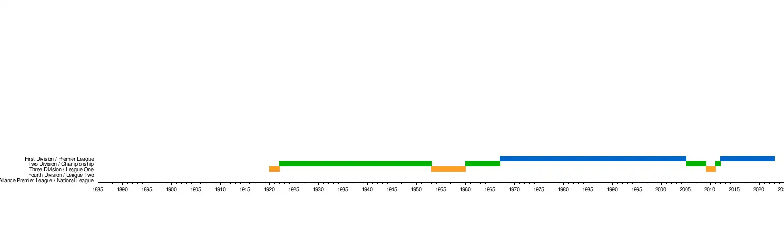 - Temporadas en Second Division (hasta 1992),[14] First Division (hasta 2004)[14] y Championship:[14] 41 (Incluyendo la 2011/12)