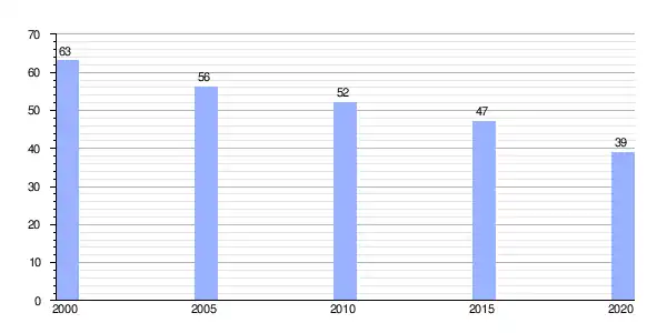 | Gráfica de evolución demográfica de Souto (aldea) entre 2000 y 2020 |