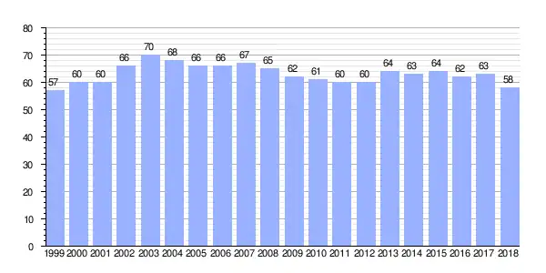 | Gráfica de evolución demográfica de Souto do Val entre 1999 y 2018 |