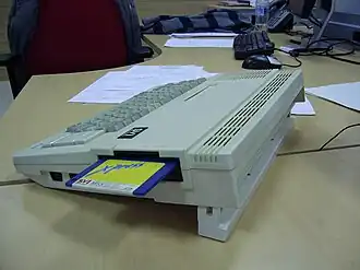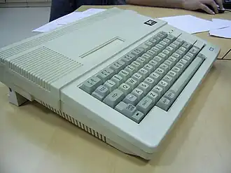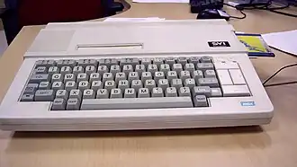 - Teclado QWERTY/AZERTY de 69 teclas. Incluye todas las teclas estándar : Escape, Tab ↹, Caps Lock, Control y 2 ⇧ Mayús. En la hilera superior 5 teclas de función (usando ⇧ Mayús + Fn, un total de 10 funciones disponibles), pipe/barra invertida, tecla de acentos varios, tecla Stop y 3 teclas de edición (CLS Home/Copy, Paste/Insert, Out/Delete). En la hilera inferior 2 teclas especiales: Graph y Code (en combinación con las teclas alfanuméricas permiten acceder a los pares de caracteres gráficos indicados en el manual), barra espaciadora y tecla Select. LED rojo en la tecla Caps Lock que se enciende al clavar mayúsculas. Teclas de cursor de forma rectangular y sobre ellas LEDs de actividad de la unidad de disquete.