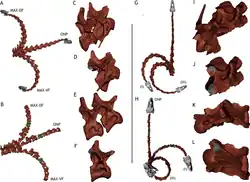 - ↑ a b Vidal, D. C.; Ortega, F. (2015). The specialized tail of Spinophorosaurus nigerensis (Sauropoda. Middle Jurassic) and the osteological limits on its range of motion. 63rd SVPCA (Symposium for Vertebrate Palaeontology and Comparative Anatomy), At Southampton, England.