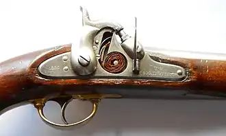 Los anteriores mosquetes tenían cañones de ánima lisa y estaban equipados con llaves de chispa. En la década de 1840, las poco fiables llaves de chispa fueron reemplazadas por las llaves de percusión más fiables y resistentes a la humedad. El cañón de ánima lisa y la imprecisa bala esférica también fueron reemplazados por cañones con ánima estriada y la recién inventada bala Minié. Mientras los viejos mosquetes tenían un alcance efectivo de 46-91 m (50-100 yardas), el Modelo 1855 tenía un alcance efectivo de 370 m (400 yardas) y era letal a más de 910 m (1.000 yardas).[2]