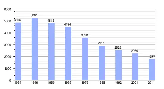 | Gráfica de evolución demográfica de Stávertsi entre 1934 y 2011 |