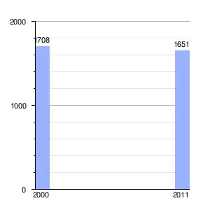 | Gráfica de evolución demográfica de St. John's Village entre 2000 y 2011 |