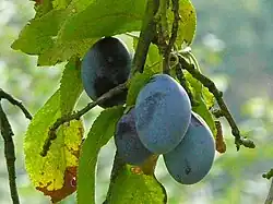 Ciruelas 'Stanley' maduras en el árbol. | ||