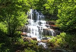 Hay varias cascadas, sobre todo en las partes occidental y central de la cordillera, como Raysko Praskalo, que es la más alta de la península de los Balcanes, Borov Kamak, Babsko Praskalo, Cascada de Etropole, Karlovsko Praskalo, Skaklya y otras. Los desarrollos de las dos últimas décadas han cambiado por completo la geografía de Serbia en lo que respecta a las cascadas. La zona de Stara Planina siempre ha estado escasamente poblada y ha sido inaccesible debido al terreno escarpado y boscoso, pero también por ser la ubicación de la frontera serbio-búlgara. Cuando los ejércitos renunciaron a las fronteras cediendo el control a la policía fronteriza, se permitió a los civiles explorar la zona.[2] Como resultado, desde entonces se han descubierto cascadas cada vez más altas en el lado serbio del Stara Planina: Čungulj en 1996 - (43 m);[3] Pilj en 2002 - (64 m);[3] Kopren en 2011 - (103,5 m);[4] Kaluđerski Skokovi en 2012 - (232 m).[5]