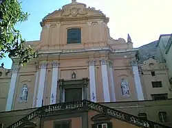 En la Via Santa Teresa degli Scalzi, rectificada y llamada Corso Napoleone por José I Bonaparte para hacer fácil el acceso al Palacio Real de Capodimonte, fue edificada por Giovanni Giacomo Conforto (1602-1612) la iglesia homónima, junto con el convento de los carmelitas descalzos.