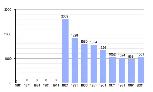 | Gráfica de evolución demográfica de Stenico entre 1861 y 2001 |