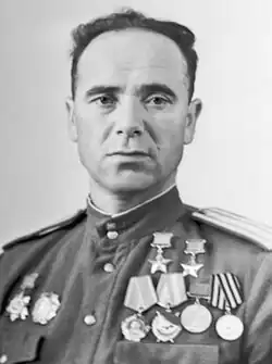 - ↑ Shkadov, Iván (1987). Герои Советского Союза: краткий биографический словарь I, Абаев - Любичев [Héroes de la Unión Soviética: un breve diccionario biográfico I, Abaev - Lyubichev] (en ruso). Moscú (Rusia): Voenizdat. p. 78. OCLC 247400108.