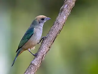 ![]() Ejemplar hembra de tangara isabel (Stilpnia cayana chloroptera) en Extrema, Minas Gerais, Brasil. | ||